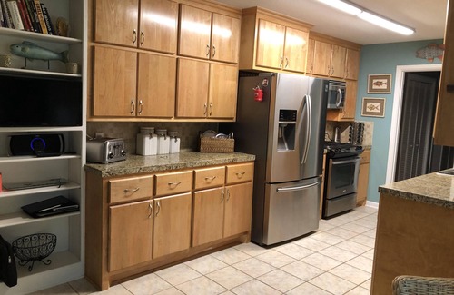 - Sleeps 9 (king beds in three bedrooms, sofa bed in den and stored roll away bed).