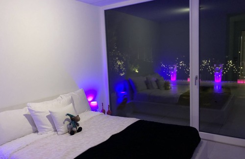 The room has a double bed with a full-length BICO mattress, SAMSUNG® "40" inch flat screen TV with Apple®TV, private bathroom en suite, barrier-free rain shower, private terrace 45m² with a grandiose view, minibar, own Nespresso® coffee machine, free- WiFi, 1 free parking space in front of the house.