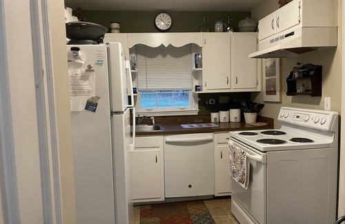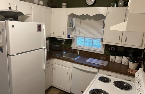Great location!! City living with a country view. Enjoy the horse park view from the living room of this cozy, private 2 bed, 1 bath sleeps 4. Convenient to I-285 and downtown Decatur. Close to Emory, Fox Theater, Olympic park, Georgia Aquarium, the Ferris Wheel and everything Atlanta! Ponce City Market is great for shopping and dining and only minutes away. Stone Mountain Park is another Atlanta favorite and just a short drive east. Whether your vacationing, visiting family, attending events or just a break from the highway, the location is perfect for every reason to visit Atlanta. This cozy, private two bedroom home is close to everything! Private driveway with carport has plenty of space for more than one car. A small seating area is under the carport and a newly added deck added to the back of the house to enjoy all the views. Fully stocked kitchen has everything needed for preparing a meal or just reheating. Fresh towels, linens, hair dryer and some toiletries are provided. Paper towel and cleaning supplies are always available. There is a queen bed in first bedroom and a full size bed in the second bedroom. The living room has a a pull out sofa couch and a designated "dog couch". The "dog couch" is positioned for premium viewing. Watch the large tv with Roku channels, and other streaming. Pass thru room has futon type couch. The large back yard has a chain link fence 5 feet high. There is plenty of room for dogs to run. The treelined street is perfect for dog walking. Dog amenities make this better than pet friendly! The square footage of the home only allows 2 dogs and under 50lbs.