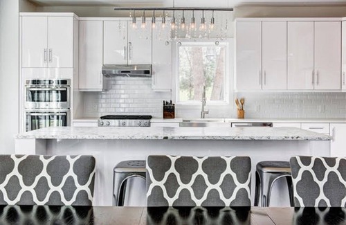 New construction, built in 2017, this beautifully designed, modern farmhouse is open concept with plenty of room for entertaining indoors and out. Inside, find two master suites complete with double-sink bathrooms and walk-in closets - 1 on the ground floor, 1 on the second floor. There are two more bedrooms that share one beautiful, double-sinked bathroom with tub, also on the second floor. All rooms are fully equipped with flat screen, smart TVs and cable. The house has six Sonos zones so that guests can listen to their own playlists wherever they like. The kitchen is fully equipped with stainless steal appliances including a wine fridge, double-ovens, dish washer, and microwave. In the summer months, the heated pool is open. The basement is finished with a fully equipped home theater, home gym with rower (guests assume all liability for use), recreation room, and powder room.