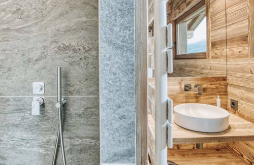 The four en suite bedrooms are situated on the first floor. Twof the bedrooms, including the master suite, have their private en suite bathroom while the other two bedrooms share a jack and gill bathroom. The wellness area is located on the ground floor and offers a hot tub for guests to enjoy after a day on the slopes. In addition, there is a ski room with boot warmers on the ground floor.
