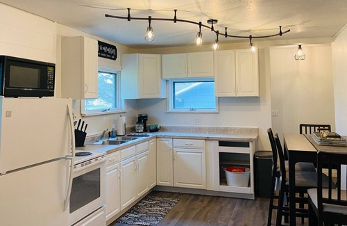 Enter into the one-level home to the open concept living space. Find a fully stocked kitchen with all your cooking essentials, then gather around our table for four to enjoy your meal or play one of the board games!