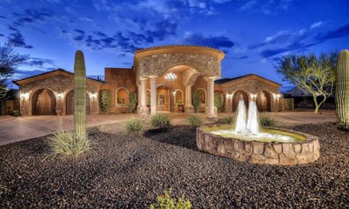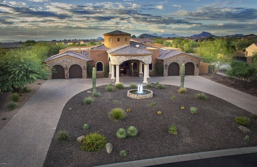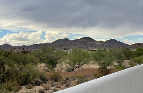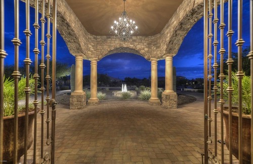 This house was built for fun and to share joyous times with family and friends. The incredible designed "follows" the sun throughout the day and yet the sun never touches a wall of the home itself - never gets hot inside. 60 foot ceiling - not a type-o :) - 6 staircases including spiral next to the full and then some outdoor kitchen (8 burners plus griddle/Benihana style cooking) to the observation/sun/dinner deck on the roof. Its massive & has gorgeous 360 degree forever city and mountain views including Superstition Mountains which stare us in the face. There's boating with a marina bar and grill 10mins away in Usery Park. Expansive master (1500+ sqft) with a sitting room and his/hers bathrooms and showers and huge Jacuzzi tub. Theater room has 14 leather recliners and additional giant 6-7' foam love sac type things of ultra comfort, Huge commercial kitchen designed for catering, Game room with pool table and bar. Beautiful travertine & granite throughout, 60 foot + atrium ceiling with 8' fountain and and dual curved staircases on each side. A dozen fountains, an indoor/outdoor grotto and breakfast patio, and a stairway ascending from the downstairs living area to the pool. The home is 6565 sqft inside with 3200 sqft of patio outside, full outdoor 8 burner kitchen. The luxury, beauty, and unique character of this home can't be matched. We're open to vacation rentals and longer term or corporate rentals.