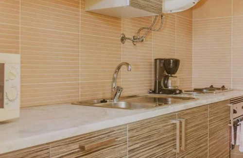The rooms feature air conditioning to keep guests comfortable throughout their stay, especially during warm weather. A living area provides a cozy space to relax and unwind after a day of exploring the surroundings. The kitchen is fully equipped, allowing guests to prepare meals and snacks at their convenience.