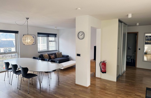 This amazing central apartment is 100 square meters in size which is much bigger than the usual listings in Reykjavik. It is ideally located in the heart of Reykjavik both close to the centre and the harbour area. The apartment has two bedrooms, one with a very comfortable king size bed and the other one with two comfortable single beds that can be put together to make one double bed. The apartment has a super comfortable living area with a very spacious fully equipped kitchen with a dishwasher. The apartment is located close to the old harbour area where your will find a lot of attractions like while watching and fishing along with local restaurants. The city centre is very close by where you will find the best restaurants in town, museums and information centres. There is a small grocery store just around the corner where you will find all the necessities you may need . And last but not least the apartment comes with a high quality wireless internet.