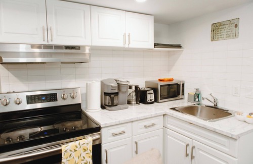 This 1-bedroom, 1-bathroom rental features a living room, air conditioning, and a desk. Connect to the WiFi, or get cozy in front of the Smart TV. Bathroom amenities include a hair dryer, towels, and toilet paper. Feel free to prepare a home-cooked meal with the oven, stovetop, and refrigerator, as well as the coffee maker, electric kettle, and lobster pot. And because there's a washer and dryer, you can go a bit lighter on your packing. Other amenities include bed sheets, an ironing board, housekeeping, and heating.