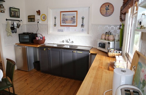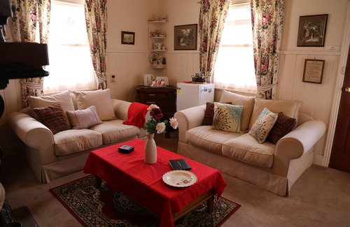 This is Perkins Place, with amazing gardens and a property that backs to the Jamieson River Reserve. This 3 bedroom two bathroom cottage with a kitchen and two living areas and three balconies command some of the best views in Jamieson. Looking out the front of the cottage to the Church and the Courthouse Hotel only one block away. The fire station is directly across the road so you can feel safer on the hot summer days with a river right behind the property. The cottage has two reverse cycle split system air conditioners . The cottage is decorated in the 1950's way and has some modern services to make life easier. This is the ultimate stay in Jamieson, come and relax in the High Country. There are 3 Queen beds and one King Single.