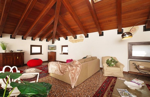 Third floor apartment for 4/6 people, about 150 square meters, consisting of large living room with exposed beams and mezzanine used as a relaxation reading area, kitchenette, double sofa bed, hallway equipped with wardrobe and laundry room, bedroom double room with private bathroom with shower and whirlpool bath, small bedroom for cloakroom use, double bedroom, bathroom with tub. The apartment can accommodate up to a maximum of 6 people. It is located in a condominium building of 5 units and shops on the ground floor. To access you use the condominium staircase and lift.