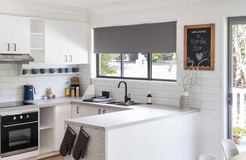 Welcome to Nordic Star, your enchanting Scandinavian-style haven that comfortably accommodates up to 10 guests. Nestled in the heart of Maleny, this unique property offers a serene escape just a 15-minute stroll from town. With an outdoor deck offering breathtaking views of the tranquil lake, where turtles, ducks, and even platypuses reside, Nordic Star promises an unforgettable getaway.