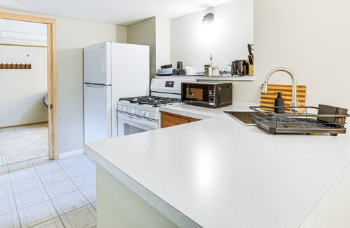 Your next North Shore escape awaits at this Evanston vacation rental! Nestled near downtown and Lake Michigan, this 2-bedroom, 1-bath apartment makes it easy to shop, dine, visit campus, and stroll along sandy shores. Want to explore more? Cheer on the Wildcats at Ryan Field or take a quick train ride into Chicago. Afterward, return home, make dinner, and hang with your pup in the shared backyard!