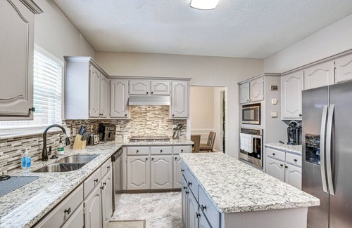 Bring the whole family for some fun in the Texas sun with this Allen vacation rental as your home base. Pack up lunch in the fully equipped kitchen before fishing, boating, or hiking at Lake Lavon — just 6 miles away! Then, return to the 4-bedroom, 2.5-bath home to lounge in the pool. Prefer to relax indoors? There are Smart TVs in every bedroom!