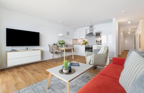 The extensively equipped open-plan kitchen leaves nothing to be desired. Here you can conjure up delicious holiday meals. The balcony invites you to enjoy a barbecue evening with a view of the water.