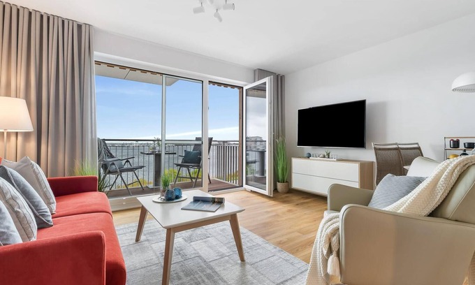 The view through the floor-to-ceiling windows and from the balcony is not only of the marina and the floating houses, but also of the Schlei Baltic Sea fjord and the Schleimünde lighthouse. Sailing boats, seagulls and beautiful sunsets guarantee a real holiday feeling.