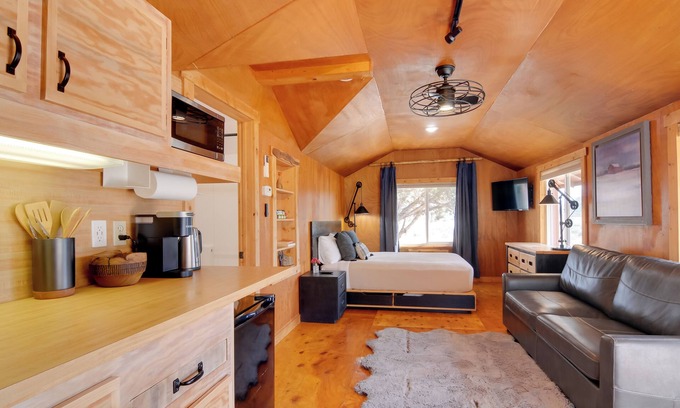 Explore endless outdoor wonders when you escape to this 'Zion Ranger Quarter’s' studio in Apple Valley, UT! Start your day taking in stunning views of the sunrise and the majestic Zion National Park. Then, grab your bike and hit Gooseberry Mesa's trails or search for the ancient Native American petroglyphs on-site! This charming 1-bath vacation rental also features a patio with a fire pit — perfect for stargazing when you're ready to decompress!