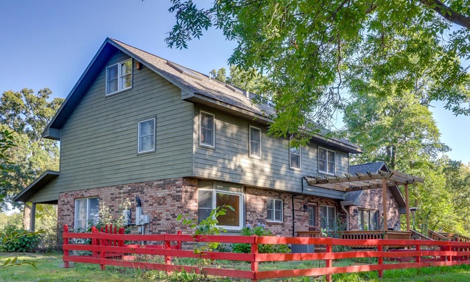 Gather family or friends and stay at this inviting 6-bedroom, 4-bathroom vacation rental home in Bentonville, AR. With 4,000 square feet of living space, this spacious farmhouse offers 2 living and dining areas, a fenced yard for playtime with your furry friends, and plenty of parking for RVs and trailers. After grilling out on the deck, watch a movie by the cozy fireplace or take a short drive to top attractions, such as the Crystal Bridges Museum of American Art and The Walmart Museum!