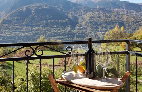 Your private outdoor area includes a garden and a balcony offering spectacular mountain views.