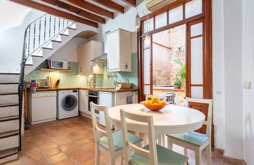The stunning traditional holiday home 'Casa Romana' is located in Pollença and impresses guests with its view of the mountains. The 3-storey property is beautifully decorated and consists of a living room, a fully-equipped kitchen with a dishwasher, 3 bedrooms and 3 bathrooms and can therefore accommodate 6 people. Additional amenities include high-speed Wi-Fi with a dedicated workspace for home office, air conditioning, heating, a washing machine, a dryer, a smart TV with streaming services as well as children's books and toys. A baby cot and a high chair are also available.