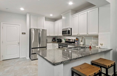 Consider this townhome your home away from home while you visit McKinney. This wonderful property features 2 bedrooms with a king and queen bed, 3 bathrooms with luxurious amenities like a bidet and bathtub, and an additional living space with a comfy futon. EV charger and 2 car garage.