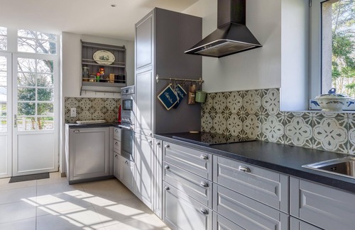 Enjoy the tranquillity and charm of your property dating back to 1790, nestled in the picturesque Calvados countryside. Here, traditional elegance and modern comfort combine to create an ideal retreat for families or groups of friends. Step inside and be welcomed by the warm and characterful atmosphere. Relax in the cosy living area with its crackling fireplace and comfortable sofas and curl up with a book in this stylish interior. Numerous bedrooms offer you maximum comfort and a restful night's sleep. Use the spacious kitchen to conjure up culinary delights together and enjoy your meals in the charming dining area with rustic wooden beams.