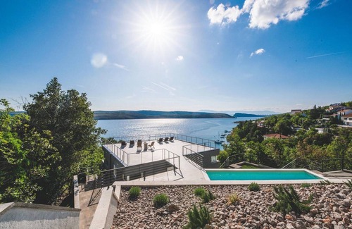 The beautiful Villa Grace is located just a few steps away from the nearest pebble beach in Jadranovo, a small village in the Kvarner region. This villa is an ideal summer vacation accommodation as it offers plenty of outdoor space and you can enjoy every minute of your vacation by soaking up the Mediterranean atmosphere and the magnificent sea view. The private pool is a particularly good place to relax. The extension of the pool area is the roof terrace with sun loungers - the perfect place in the sunset hours. The villa is divided into two floors. The main entrance leads from the pool area, and actually belongs to the upper floor. On this floor there is a beautiful common room with lots of natural light and, of course, a great view. The room is divided into the fully equipped kitchen and the living and dining area. Two bedrooms are located on the same level. The remaining two bedrooms are on the first floor and have access to the lawn, where there are two lounge chairs with sea views. Three of the four bedrooms have en-suite bathrooms, offering guests maximum comfort. A covered dining area with seating for 8 people is located on the terrace next to the living room and a charcoal barbecue is available for those who wish to prepare meals outdoors. Such a villa will be hard to leave once you arrive! Food delivery from supermarkets and farmers available on request. Important: not a party destination.the convenient location of this property offers an ideal opportunity for those who prefer a quiet vacation without stress and noise. The whole Vinodol valley is a paradise for fishermen, cyclists, walkers, hikers, climbers and paragliders. There are many cycle paths, walking and hiking trails that run along the fascinating areas of Vinodol. This allows our guests to enjoy the experience of untouched nature and cultural heritage. The coastal towns of Crikvenica and Novi Vinodolski with beautiful beaches and restaurants or the island of Krk are only 10 minutes away by car. The largest Croatian port city of Rijeka is 30 km away and Rijeka Airport is 5 km away. Car is recommended.
