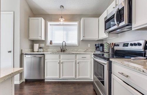 This Allen, Tx home is perfect for you, your family, and pets! It's located in a great neighborhood that is just down the street from Celebration Park and nearby to grocery stores, restaurants, shopping and anything else you may need. During your stay, relax and unwind in the living room, cook dinner in the stocked kitchen, or hangout on the covered back patio and enjoy the fresh air. Laundry and garage parking are both available, too. Keep connected while you're here with our Google mesh wifi and stream all your favorite shows on our smart TVs. When it's time to go out, you'll be just down Main St. from Central Expressway (75) giving you quick access to Plano, McKinney, Richardson, Dallas and many other great North Texas cities.