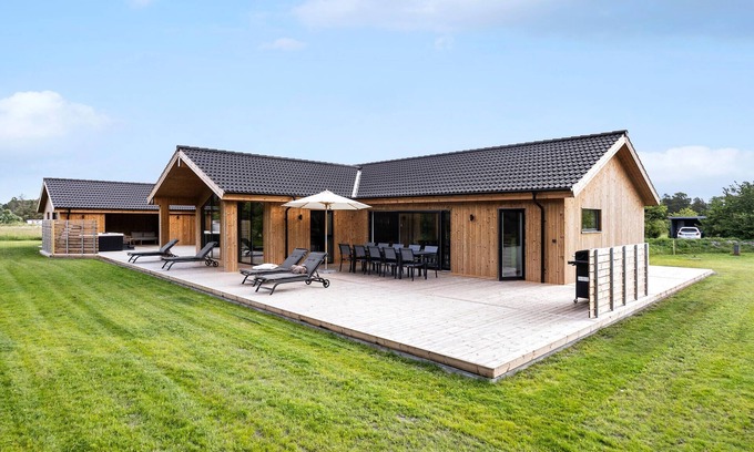 Enjoy a relaxing holiday by the sea and leave everyday life behind you in this stylishly furnished holiday home with pool and sauna.