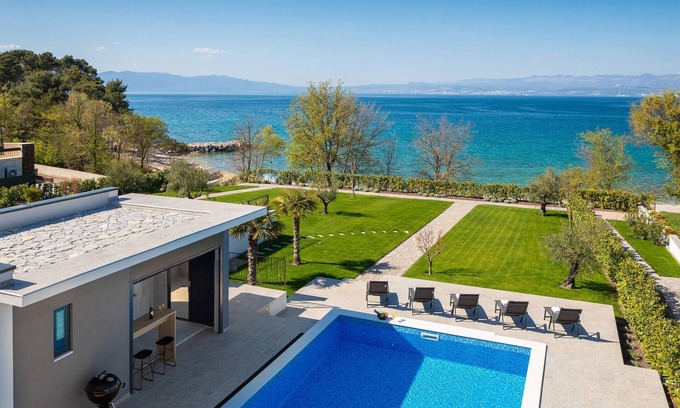 The spacious vacation home is located only 20 meters from the pebble beach on the island of Krk in the town of Malinska and is spread over several floors with space in 6 bedrooms. The house consists of two identical units on the first floor and on the second floor, so it is ideal for two families or a larger group of guests. Both units have fully equipped separate kitchens and living rooms.