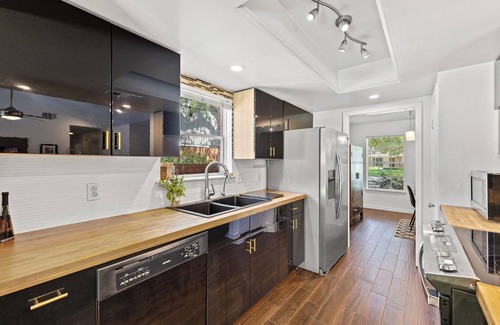 Newly remodeled one-story home with 3 bedrooms, 2 baths, and separate office/studio space. Open-concept living area with a spacious kitchen, which includes all new appliances, proper cookware, and all utensils needed to make, store, and enjoy a delicious meal. Coffee maker and starter items are also included in the kitchen pantry, such as sugar, flour, storage bags, salt, pepper, and other basics to get you going. Several grocery stores are nearby with pickup and delivery options. The owner will gladly help you get a grocery order setup to be delivered in concurrence with your check-in.