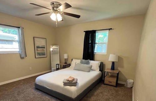 Pet Friendly Centrally located 3 bed 1 bath mint cottage. Located in the heart of Gainesville on a quiet street. You'll enjoy a fully stocked kitchen for cooking/baking; drip coffee maker, high speed internet; washer and dryer, and a smart TV. There are 4 beds- 2 queen beds and 2 twin beds.