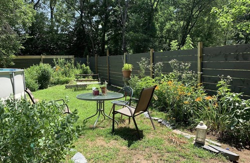 Enjoy the constantly changing perrenial/butterfly garden in the private back yard~ or just enjoy the sun in your bikini in our private pool/backyard!