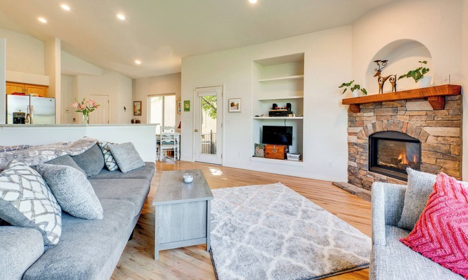 Gas Fireplace w/ Snuggle-Ready Seating | Dog-Washing Station | 3 Mi to Main St
