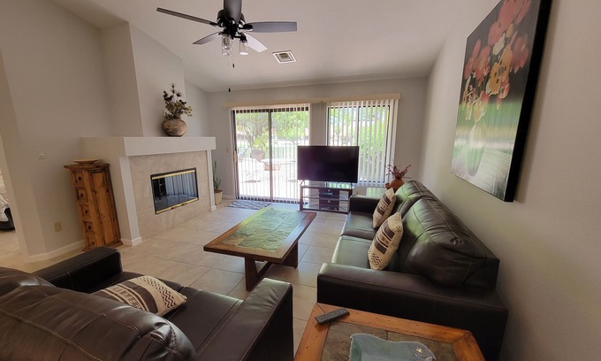 Pet Friendly Omni Golf Course Views from Open floor plan with yard-garage has 2 Bedrooms , 2 Bathrooms, and max occupancy of 4 people. The minimum rental for this property is 1 nights, but this can change depending on the season you plan on staying. Previous guests have given good rated it, and VRBO labeled it a top-rated House because of the excellent services rendered by the owner or manager of this House, and has consistently provided great experiences for their guests. Most families or guests that use it recommend it to their friends and some of them are repeat guests. House has a friendly neighborhood, and the Casas Adobes has interesting places to visit. If you want to learn more about the House in Casas Adobes, such as places to visit and things to do nearby, you can check below to learn more.