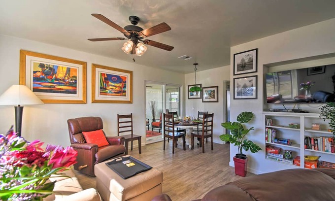Soak up the Arizona sunshine at this newly renovated Phoenix vacation rental! Nestled in the quiet West Haven community, this 2-bedroom, 1.5-bathroom house features a kid-friendly furnished breezeway, tasteful decor, a fully stocked gourmet kitchen, a Smart TV, and board games for family game nights. Play 18 holes at nearby Palo Verde Golf Course, visit the Phoenix Art Museum, or go hiking at the Phoenix Mountain Preserve — just 6 miles away! There’s something for everyone at this charming home.