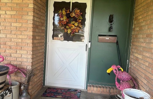 Nestled in Temple, this delightful house offers 2 bedrooms with a cozy king bed, queen & full bunk bed in second bedroom. There is a desk in king bedroom for your use. The bathroom is equipped with a hair dryer, bath gels and tooth supplies, if you forget yours. It has a walk in shower with bench seating for your convenience. The bath is equipped with handicap grab rails. Full kitchen with condiments, coffee and breakfast snacks. The living room has a TV with wifi connections and wifi is available for your use during your stay. Washer & Dryer with laundry detergent supplied. With heating and AC, you'll stay comfortable no matter the season. There is a covered patio with gas BBG Grill for your leisure. Escape to this peaceful retreat and unwind in the gorgeous surroundings. We hope you'll enjoy your stay at our house. And your pet is welcome for a small extra fee; however no dogs over 50 pounds and no Rotweilers or Pit Bulls. Front entry has one small step.