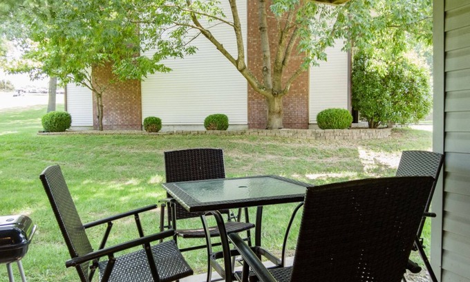 Relax in the Pointe Royale Golf Resort at 50-4, an updated 2 BD / 2 BA condo with a walk-in shower and recliners. Located within the gated community of Pointe Royale Golf Resort overlooking the 10th hole. You are within walking distance of the indoor/outdoor pools, fitness center, tennis courts, basketball courts and the 19th hole (on-site restaurant). This quiet unit has everything you need for your Branson vacation. Use the alternative routes to easily get to Silver Dollar City (10-15 minutes from the property), shows, restaurants, and other area activities are around 3 miles away on the Branson Strip. Stay. Relax. Enjoy.