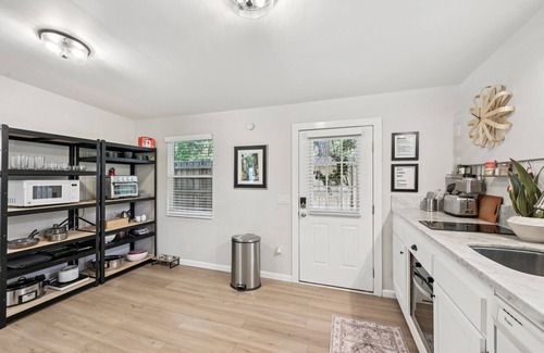 * Outdoor Space: A charming outdoor space allows guests to relax and unwind amidst a tranquil setting, perfect for enjoying your morning coffee or unwinding after a day of exploring. If you are traveling with your pets, this private, fenced-in spot is safe for them to explore and stretch out a bit