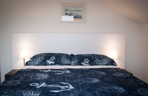 On the ground floor there is a living room with kitchen and dining area, bathroom and double bedroom. On the first floor there are two bedrooms - one single with a view on a green bench and another, double, with terrace and sea view.
