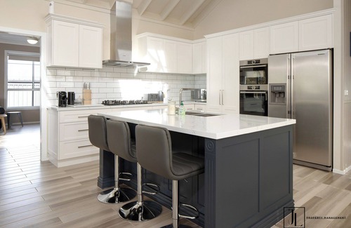 Spacious, air-conditioned home with 2 living areas, a full kitchen, and a rumpus room with pool table & arcade game 🎮.