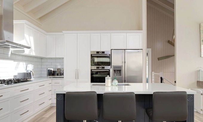 5 bedrooms (1x King, 3x Queens, 1xTri-bunk) comfortably sleep families or groups. Walk to Lilli Pilli Beach 🏖️ and Three66 Café ☕.