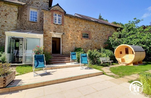 Manor house arranged on 2 levels: Ground floor: - Large living room with dining table, equipped kitchen, bar opening onto the living room, and 2 lounge areas converted into the former horse stalls - 3 toilets Upstairs: - 1 master bedroom with a 180 x 190 cm bed and its private bathroom with bathtub and toilet - 1 bedroom with a 160 x 190 cm bed and its private bathroom with shower and toilet - 1 bedroom with a 160 x 190 cm bed, bathroom on the landing with bathtub, shower, and toilet - 1 massage room (massage services available upon request from the owner) Outside: Listed park, heated indoor swimming pool, spa, Finnish sauna, and sensory shower Terrace furnished with tables, garden chairs, and barbecue Relaxation area (chairs and deck chairs) Tennis court with on-site facilities Pension with horses and Donkey Loulou, our ram mascot, will greet you upon arrival. Secure, lit parking with 10 spaces. Catering delivery available. Also available for 12 people. The Domaine de Lafayette, a haven of serenity and history. Nestled between the legendary Brocéliande Forest and the sublime Gulf of Morbihan, just 20 minutes from Vannes and 30 minutes from the beaches, this 6-hectare estate offers an ideal setting for an unforgettable getaway. In this green setting, well-being takes on its full meaning: a heated indoor pool, sauna, jacuzzi, and tennis court blend harmoniously into a preserved natural setting. Steeped in history, the manor house and its former stables reveal the passage of the Marquis de Lafayette, elegantly blending authenticity and modern comfort. Nearby, the Nantes-Brest Canal and the greenway open the way to wonderful discoveries in the heart of the Lanvaux moors. The characterful towns and the Resistance Museum arouse curiosity and enrich your stay with an extra touch of soul. A unique experience in a place where nature and history meet in harmony.