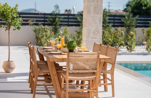 Tucked away in the serene landscape of Laganas, yet just moments from the vibrant energy of Zakynthos’ famous resort town, Petra Natura Villa is a charming stone-built retreat.