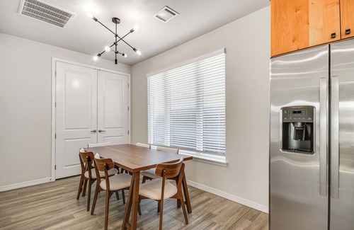 Whether you're exploring WTAMU's campus or hiking trails in Palo Duro Canyon State Park, this stunning townhouse provides an ideal launching pad for all your adventures! This 3-bedroom, 3.5-bath vacation rental will help you feel right at home with comforts like a fully equipped kitchen, in-unit laundry machines, and a desk for working remotely. Ready to venture out? Watch a basketball game at First United Bank Center or visit Amarillo!