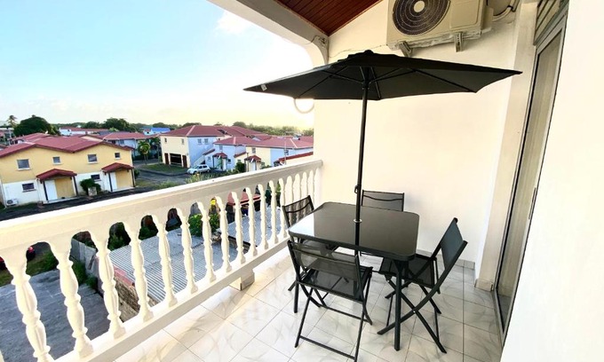 Peyi Galante Évasion offers accommodations in Saint-Louis, 1.3 miles from Folle Anse Beach. This apartment provides air-conditioned accommodations with a balcony and free Wifi. The apartment provides guests with a terrace, city views, a seating area, a flat-screen TV, a fully equipped kitchen with an oven and a microwave, and a private bathroom with shower and a hair dryer. A toaster, a fridge, and stovetop are also provided, as well as a coffee machine and a kettle. At the apartment complex, all units have bed linen and towels.