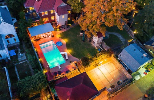 Live like a Louisvillian while attending the PGA Tournament in a 4500 square feet historic home in Cherokee Triangle. This home is located on scenic Cherokee Road across the street from Cherokee Park and is walking distance to Bardstown Road's restaurants and bars. The central location near the Grinstead exit of I-64 allows an easy commute to Valhalla, Churchill Downs, NuLu, German Town, and Downtown, the Bourbon Trial, and many other area attractions. The back yard is a private oasis with an 18 x 38 foot heated pool/spill over hot tub and adjacent 14 x 30 foot heated pergola with a roof that closes fully, ceiling fans, lights, kitchenette, dining table, and seating. Cook outdoors on the propane grill. Play corn hole on the adjacent turf. A lighted multi purpose concrete pad with basketball goal and nearly full size pickleball court can be used as off street parking for 3 vehicles (accessed from the rear alley). There is even play equipment and a sand box if children are traveling with you. The rear detached 2 car garage (accessed off alley) is available and there is on street parking in front of home. First floor laundry area with washer and dryer.