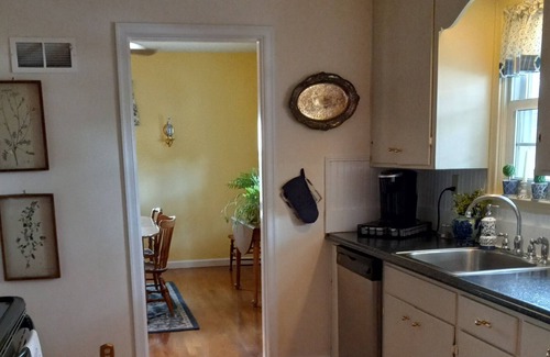 The entire home is available by the night, by the week, or for extended stays. This charming home built in 1940 has been lovingly rehabed and decorated with antiques and vintage finds. There are 2 bedrooms on the main floor, a large bathroom, a fully appointed kitchen, dining room and living room with a fireplace. Upstairs is a large loft area with a sitting area, two twin beads, and a full size bed.