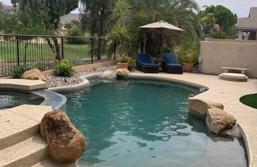 Phoenix 4 Bedroom Villa on Golf Course Sleeps 8-10, Private Heated Pool, Hot Tub has 4 Bedrooms , 2 Bathrooms, and max occupancy of 10 people. The minimum rental for this property is 1 nights, but this can change depending on the season you plan on staying. Previous guests have given good rated it, and VRBO labeled it a top-rated House because of the excellent services rendered by the owner or manager of this House, and has consistently provided great experiences for their guests. Most families or guests that use it recommend it to their friends and some of them are repeat guests. House has a friendly neighborhood, and the Legacy has interesting places to visit. If you want to learn more about the House in Legacy, such as places to visit and things to do nearby, you can check below to learn more.