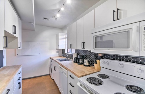 Couples, solo travelers, and professionals with a passion for the arts will feel at home at this 1-bedroom, 1-bath Phoenix vacation rental! The home's unique industrial design gives it a modern feel and combines a fully equipped kitchen, 2 Smart TVs, a fabulous dry bar, and a private patio together to create an ideal space for you to relax. Enjoy a cocktail under the twinkling string lights and grapevines outside or peruse the galleries in the Roosevelt Row Arts District just under a mile away!