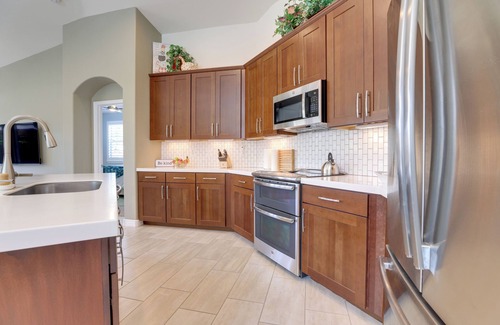 Looking for a warm, inviting spot for your next vacation? Check out this 3-bed, 2-bath Phoenix home! Nestled in a gated community, the property features new furnishings, a well-stocked kitchen, a patio with outdoor dining, and a spacious yard. Take a dip in the community pool just 100 feet away! Explore the Desert Botanical Garden, enjoy stunning views from Camelback Mountain, or tee off at Raven Golf Club nearby!