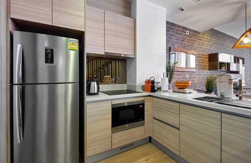 In a beautiful secure and luxurious residence with its large swimming pool and deckchairs, and a direct access to a paradise beach, stay in this beautiful apartment fully air conditioned and designed with taste to make your stay idyllic. Large living room with sofas and dining table, Wifi Internet and cable TV. Balcony with direct access to the pool. The kitchen is fully equipped with fridge, oven, microwave, dishwasher, washing machine, coffee machine, toaster, etc... The two beautiful bedrooms both have a very comfortable king size bed and a beautiful private bathroom. With its neat decoration and ideal location, the apartment is a safe bet to enjoy a wonderful trip to Thailand.