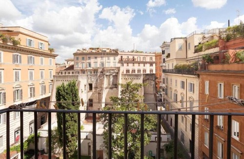 The apartment, furnished in classic style, with a precious quality wooden floor and exceptional high ceilings with magnificent original exposed beams of the late 1800s, is perfect for large families and gives the opportunity to organize lunches or dinners for work or with friends. This prestigious and elegant apartment enjoys a beautiful location: it is located in Via Giulia, the heart of Roman antiques, in the historic center. Large in size, on the third floor – with elevator – it can accommodate up to 6 people and enjoys a breathtaking view of the rooftops of Rome. It is only a ten-minute walk from the Vatican, Piazza Navona and Campo de ’Fiori.The Picasso apartment, with an area of 120 m2, consists of a double bedroom, with its bathroom with bathtub, another bedroom with two single beds, a second bathroom with shower, a functional and equipped kitchen and a large very cozy living room with two armchairs, a sofa bed and a dining table